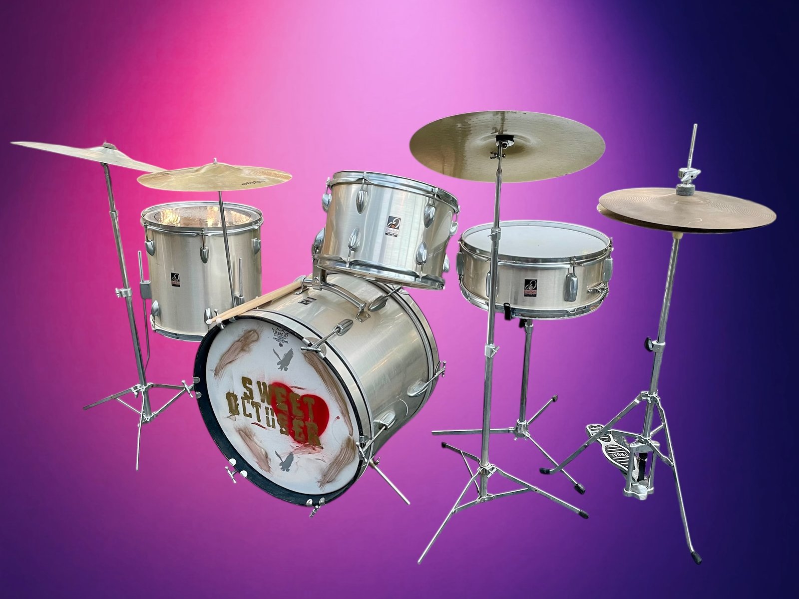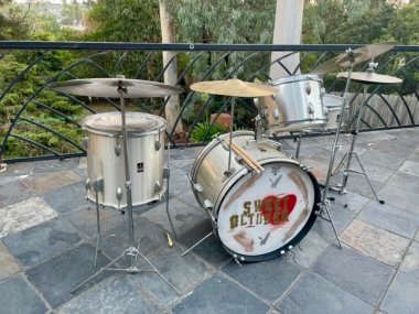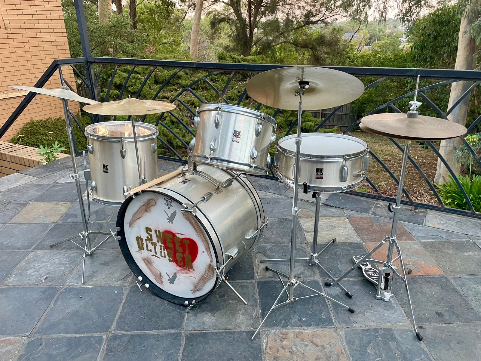 This is a Japanese drum kit. As the badge says “World’s Supreme Quality”, it’s a little vintage ripper.
