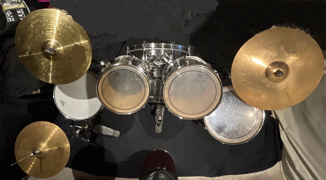 14in Hi-hats, 16in Crash, and 20in Ride Cymbal.