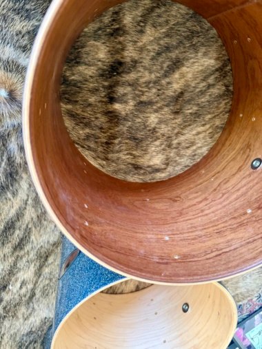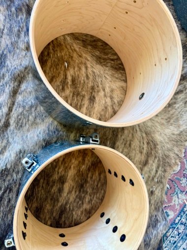 8-ply (7.2mm) 2-ply Maple/6-ply Mahogany shell w Fully Rounded edges and Maple hoops.