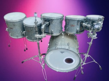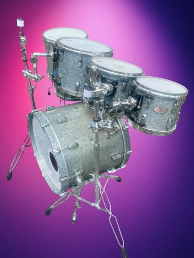and R2 Air Tom Suspension System – these are available also if you like. The rack toms are currently fitted with more modern Pearl Optimounts.